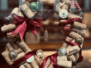 ワインのコルクは職業柄沢山あったので、コルクでリースやツリーを作りました。